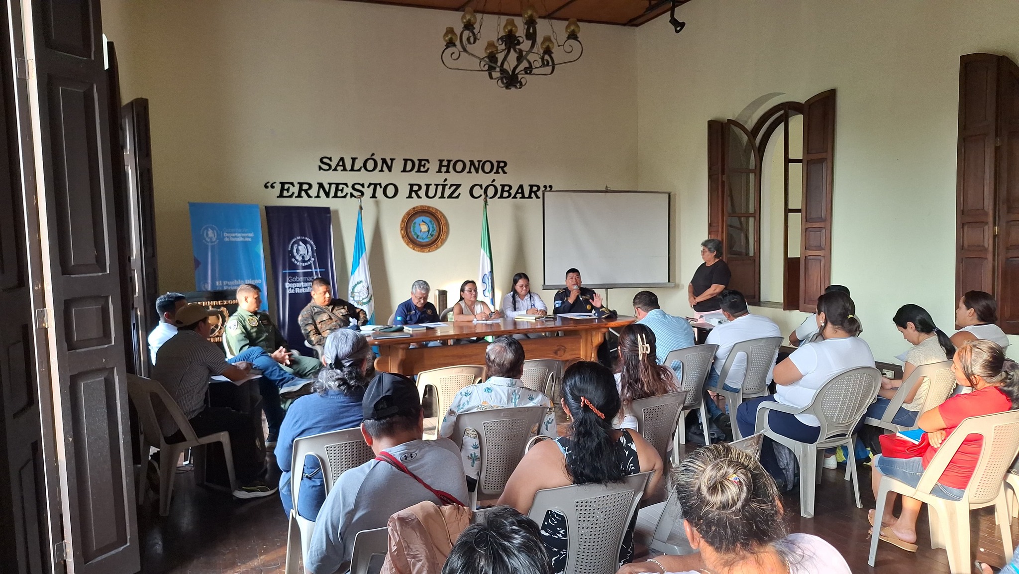 Retalhuleu, 29 de abril de 2025. El gobernador de Retalhuleu, Fernando Mazariegos, en seguimiento a las acciones de seguridad que se implementan en el departamento, promovió un espacio de diálogo en respuesta a la solicitud presentada por un grupo de líderes y lideresas organizadas de los consejos comunitarios de desarrollo (Cocode) de la cabecera de Retalhuleu y comunidades circunvecinas.