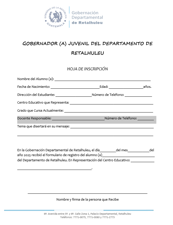La entrega de documentos será en la Gobernación Departamental de Retalhuleu el día que se inscriba.