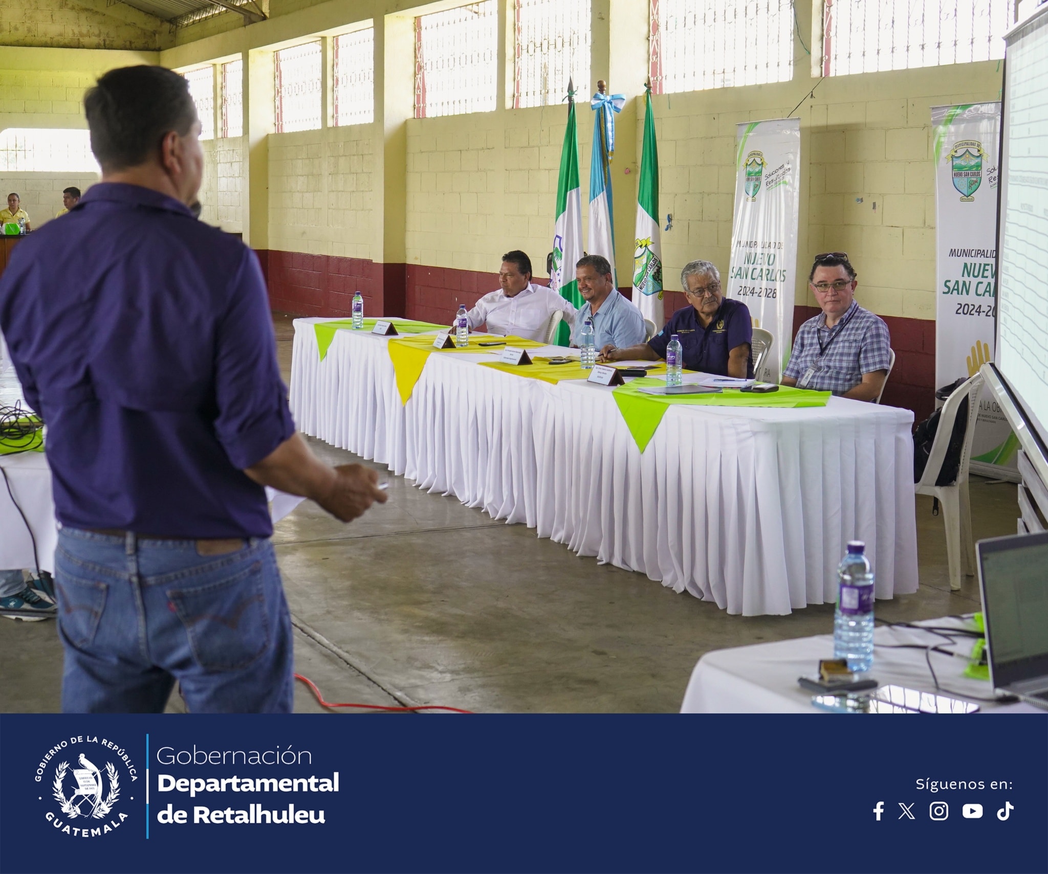 Retalhuleu, 28 agosto de 2025. Con el objetivo de fortalecer la planificación y coordinación institucional en el departamento, se llevó a cabo la novena reunión ordinaria del Consejo Departamental de Desarrollo (Codede), presidida por el gobernador departamental, Fernando Mazariegos, en el Salón Municipal de la colonia Morán, aldea Morazán, zona 1 de Nuevo San Carlos.